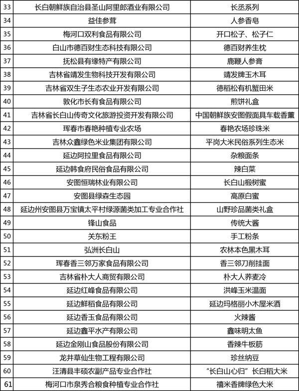 榮獲“吉林禮物”稱號企業及產品名單