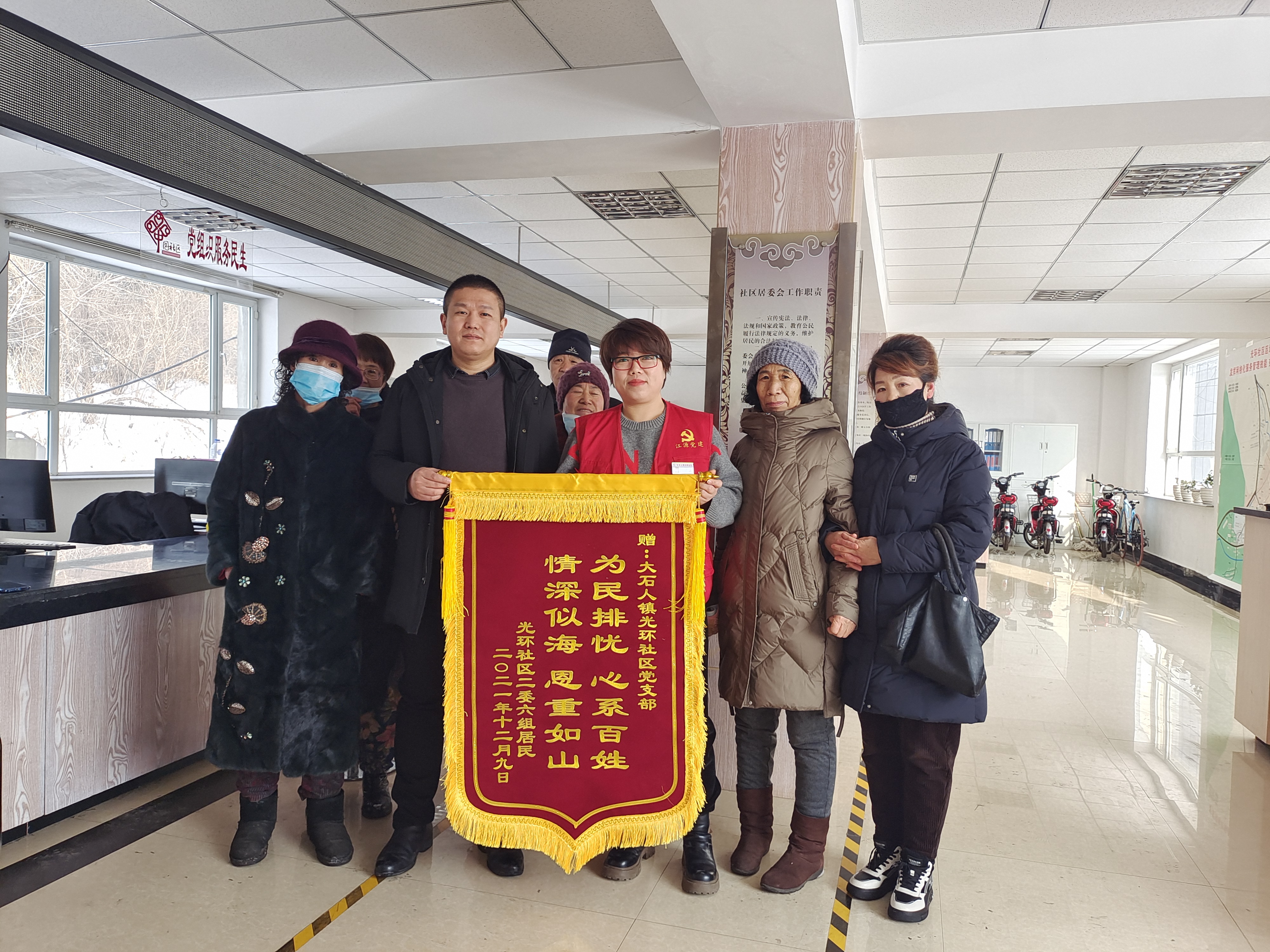1月17日一大早,白山市江源區(qū)大石人鎮(zhèn)光環(huán)社區(qū)二網(wǎng)格居民代表們來到光環(huán)社區(qū),對社區(qū)解決他們冬天吃水難的問題表示衷心的感謝,特地送來了印有“為民排憂,心系百姓,情深似海,恩重如山”字樣的錦旗。 據(jù)悉,光環(huán)社區(qū)二網(wǎng)格一片區(qū)由于自來水防凍層過淺,存在每年近二十戶居民吃水難問題,社區(qū)二網(wǎng)格通過三長聯(lián)動機制,社區(qū)黨支部積極聽取網(wǎng)格長意見,將問題形成清單,為居民重新鋪設(shè)自來水管路,徹底解決居民吃水難問題,給居民帶來了實實在在的改變和便利,居民為此紛紛點贊。 來送錦旗的居民們高興地說:“多虧社區(qū)給我們解決了用水問題,對社區(qū)傾聽居民訴求,不等不靠,不推諉,主動承擔(dān)責(zé)任的工作態(tài)度表示感謝!”光環(huán)社區(qū)黨支部書記崔霞說:“作為基層工作者,我們今后一定要把工作做得更好,把矛盾和問題解決在基層,以實際行動服務(wù)居民,積極為居民做好事、辦實事、解難事。” |