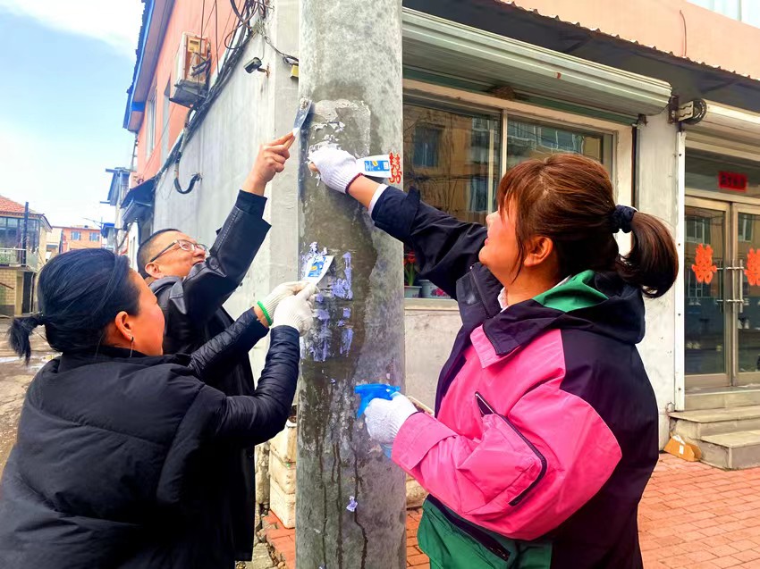 “各位在職黨員,請大家于下午1點30分到社區集合開展春季衛生會戰清理‘牛皮癬’活動”4月20日,早上一上班,社區工作群里出現了這樣一條消息! 當天下午,撫松縣撫松鎮南關社區18名在職黨員迅速集結,紛紛領取了社區發給的手套、小噴壺、小鏟子、垃圾袋等小工具立即下沉巷道、胡同對圍墻、電線桿等新出現的小廣告、海報“牛皮癬”開展“地毯式”清除工作。 “不能硬揭,先噴水進行浸泡才能鏟干凈”“這些小廣告貼得真高,得找個凳子才能夠得著”“這疙瘩我來清理,你先到前面繼續找。”……大家走街串巷,仔細搜尋,發現小廣告或海報就立即進行噴水、浸泡、刮除,對清理的垃圾紙片或碎沫及時收集到垃圾袋內,大家分工明確,相互配合,耐心細致,所到之處各類“牛皮癬”一掃而光! “號召在職黨員到社區開展‘雙報到’服務,讓我們的社區工作更有活力!”撫松鎮南關社區黨委書記、主任王鑫表示。 活動進一步鞏固城鄉社區文明創建成果,提升黨建引領“三城”創建活動水平,促進“雙報到”工作效能,在助力服務社區工作中,實現了社區“大黨委”黨建工作走深走實,進一步完善基層社會治理體系,讓飄揚的黨旗在社區更紅,讓黨徽在為民志愿服務中熠熠生輝。 |