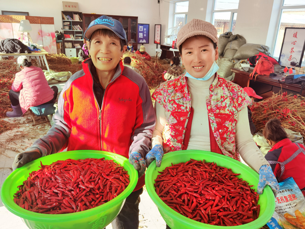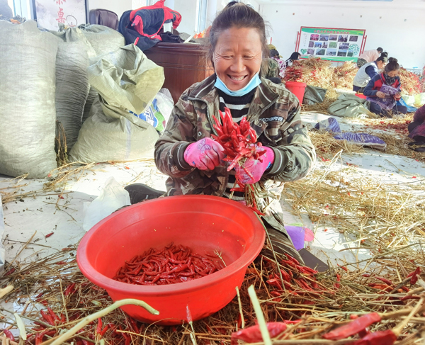 “你瞅瞅,這朝天椒多帶勁,現在價格十塊五一斤,還能漲。照當下這行情,一公頃收入也是玉米的好幾倍!”11月16日上午10點,在雙遼市臥虎鎮前六家子村黨支部領辦的大潤吉秋種植專業合作社內,村黨支部書記王艷秋順手拿起地上一棵滿是朝天椒的辣椒秧,向前來調研的鎮長孫志成興奮地介紹。 溫暖的屋子里,10多名本村婦女有說有笑,忙著摘辣椒。此時,冬日的陽光透過窗戶照射在朝天椒上,瞬間映紅了村民的笑臉。 家門口“紅火”的朝天椒路,是“領頭雁”王艷秋帶領村民敢闖敢試“蹚”出來的。 今年,前六家子村因地制宜發展朝天椒種植。“老百姓只有賺到錢,才能跟著你干。”王艷秋深知這個道理。為了得到大家信任,她自掏腰包帶著村里人到長嶺、前郭等地考察,還拿出自家2公頃地做試驗田,成立了由村黨總支部領辦的“大潤秋種植合作社”,承擔了建設35棟大棚的全部費用。 緊接著,村里自行培育椒苗和種植成椒,1400萬株椒苗如期栽進孕育希望的土地…… “從春天育苗就開始在這干活。進入冬季,閑著也是閑著,就近務工,一天能掙100多塊錢,回家還能照顧家里人,上哪找這好事兒啊!”51歲的村民張素華說起自己快樂的“工作”,笑容不自覺地爬上了臉頰。 聽著村民暢談,王艷秋笑逐顏開地盤算起收入小九九。“今年,全村40公頃朝天椒產量大概33萬斤,村集體增收50萬元不在話下,120戶農戶增收180多萬元已成定局。除此之外,還帶動就業30多人。” 依托小辣椒,激活“大產業”。 推開村民陳靜家的院門,幾“垛”擺放整齊的朝天椒紅彤彤格外顯眼。見大家到來,陳靜忙迎了出來。“現在辣椒行情不錯,不過王書記說價格還能漲。我們聽書記的,她說賣我們就賣。”說著看向王艷秋,眼神里滿是敬佩。 “今年,在王書記指導下,我種了1.9公頃朝天椒。按目前行情,一公頃能賺六七萬元,這日子想不紅火都不行。”看得出,陳靜心里有數不盡的喜悅。 “合作社今后將繼續擴大朝天椒種植面積,把朝天椒打造成拓富增收的大產業,先讓前六家子村老百姓的日子紅火起來,再輻射帶動其他鄉鎮村屯……”聊起這“火辣事業”,王艷秋篤定的目光望向遠方。 |