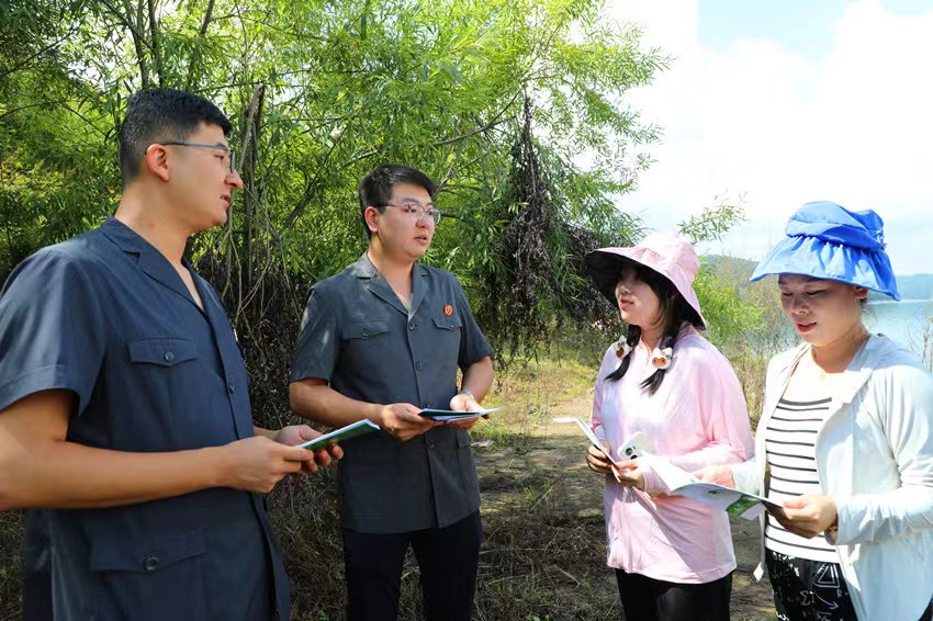 “您好,我們是法院的,8月15日是‘全國生態(tài)日’您需要我們?yōu)槟峁┓蓭椭鷨幔俊薄皻g迎!歡迎!我們老百姓真得很需要學(xué)習(xí)更多的法律知識”…… 8月13日,在第二個“全國生態(tài)日”即將到來之際,撫松縣人民法院行政審判庭法官干警組建普法小分隊(duì),專程趕赴80公里之外的白龍灣風(fēng)景區(qū)及景區(qū)沿線的豐收村“滿族村寨”開展社會普法宣講活動,所到之處受到游客及干部群眾的歡迎。 “這么整潔美麗的風(fēng)景請不要隨意丟棄垃圾,要將垃圾分類放到相應(yīng)的垃圾桶里,踐行綠色出行”“大人要教育孩子從小樹立節(jié)約用水、用電,反對餐桌浪費(fèi),推行‘光盤行動’”“全民要珍惜保護(hù)野生動物,遠(yuǎn)離‘野味’”…… 在景色秀麗的白龍灣風(fēng)景區(qū)及“滿族村寨”,普法小分隊(duì)頂著中伏的高溫走近游客、走近百姓,在積極熱情接觸群眾中將印制成圖文并茂的法律宣傳手冊散發(fā)給大家,積極解答群眾相關(guān)法律問題,在景區(qū)顯要位置懸掛印有“保護(hù)生態(tài)共建美麗長白山”“安全與健康同在,節(jié)能與生態(tài)齊美”字樣的宣傳條幅,一系列的活動舉措不斷教育引導(dǎo)廣大群眾樹立“綠水青山就是金山銀山”的生態(tài)文明法治理念。 “大熱天法官辛苦了!經(jīng)過對生態(tài)環(huán)境方面的法律法規(guī)了解和學(xué)習(xí),我們一定更加珍惜美好的自然生態(tài)環(huán)境,珍惜和保護(hù)好我們賴以生存的家園!” “今后我們將整合發(fā)揮審判資源優(yōu)勢,加大以案釋法及典型案例社會普法教育力度,不斷提升人民群眾的獲得感、安全感和幸福感!”宣講法官干警同群眾交流互動時紛紛表示。 通過深入景區(qū)開展宣講普法,不斷延伸“三官一律”進(jìn)基層活動載體,不斷推動“誰執(zhí)法誰普法”責(zé)任制走深走實(shí)。活動當(dāng)天,普法小分隊(duì)累計(jì)發(fā)放生態(tài)宣傳手冊100份,懸掛宣傳橫幅2條,解答群眾關(guān)于生態(tài)建設(shè)方面的法律疑問11條,受教育游客及群眾累計(jì)160人次,迎“國家生態(tài)日”普法宣講活動開展的有聲有色。 |