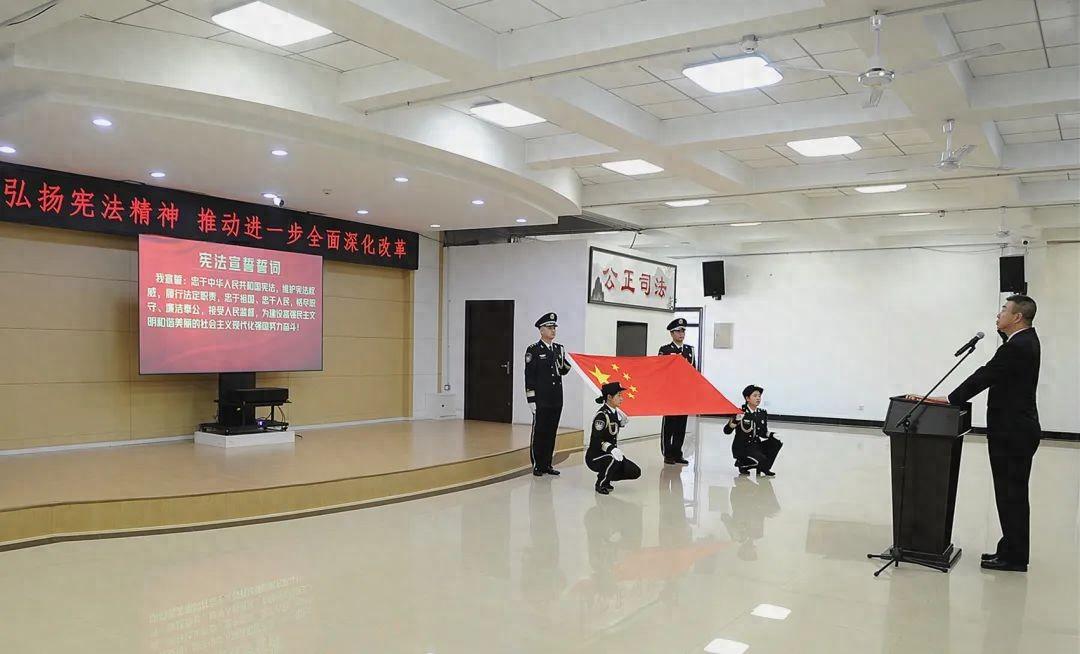 12月4日,長春市九臺區人民法院法警,面對鮮艷的五星紅旗莊嚴宣誓。