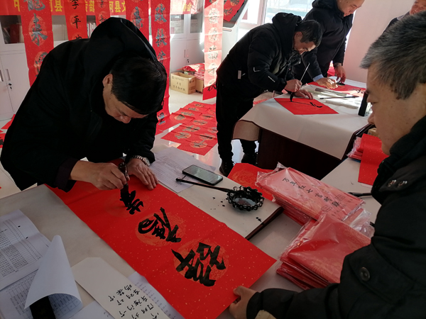 “還有20多天過年了,正準備去集上買春聯(lián),大喇叭就通知今天書法家來村部給寫春聯(lián),我就趕過來。這手寫的春聯(lián)跟街里賣的就是不一樣,更能感覺到濃濃的年味兒。”手捧著書法家的“墨寶”,柳河縣柳南鄉(xiāng)通溝村劉立軍喜不自禁地說。 在通溝村村部,50多名村民早早就來到現(xiàn)場等候。文化活動室里,長桌排開、筆墨鋪就,書法協(xié)會會員們揮毫潑墨,用嫻熟的筆法為村民書寫春聯(lián)、福字,一幅幅飽含著濃濃年味、寓意吉祥的春聯(lián)福字躍然紙上。頃刻之間,活動現(xiàn)場已成為一片喜慶的“紅色海洋”。 村民一邊欣賞書法技藝,一邊品評春聯(lián)寓意,不時地嘖嘖稱贊,喜悅之情溢于言表,整個活動現(xiàn)場翰墨的清香與眾人的歡笑,讓濃濃的年味在空中不斷流淌。僅一上午時間,書法家們就為村民書寫春聯(lián)500余幅、福字500余張,攝影家為村民拍攝全家福照片100張。 “元旦剛過,我們就開始謀劃今年的文化進萬家活動。制定好方案后,就以最快的速度開始了。通溝村是第一站,這次活動還將持續(xù)一周的時間……”縣文聯(lián)秘書長張雪松說。 據(jù)了解,這次文化惠民活動以“新春贈佳聯(lián)、全民慶佳節(jié)”為主題,由縣委宣傳部主辦,縣文聯(lián)以及全縣各文藝家協(xié)會承辦。通過組織文藝志愿者進村屯、進社區(qū)、進企業(yè)、進機關的形式,廣泛開展“結對子、種文化”“送萬福、進萬家”等志愿服務活動。 這些民間藝術家協(xié)會會員會陸續(xù)前往亨通鎮(zhèn)黃崴子村、三源浦朝鮮族鎮(zhèn)、中崗街道朝陽社區(qū)、中溢集團,免費為農(nóng)民、社區(qū)居民、企業(yè)職工寫春聯(lián)送祝福。 |
